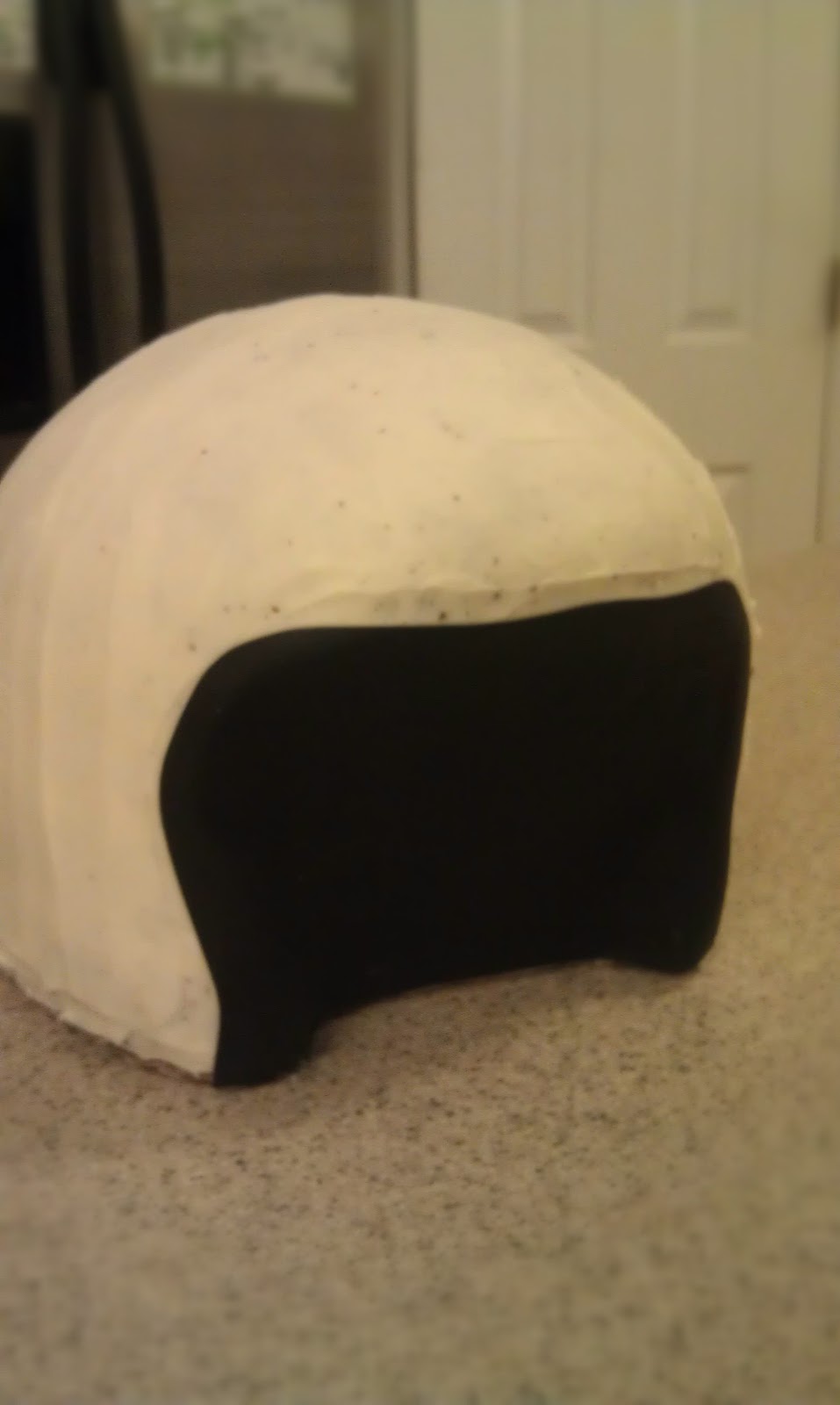 Then I covered it in white fondant - notice I did it in two pieces. Much easier to cover and I always have a thick strip going down the center of the helmet anyway (see next picture). I used just a small line of white chocolate to hold it together. Make sure your cake is not too cold and for sure not at all frozen when you cover it with fondant - because after it warms all the way up it will begin to loosen and separate. (you can tint your fondant first and then just paint another coat over it if you want - that would actually work out good just in case you do see any brush strokes)